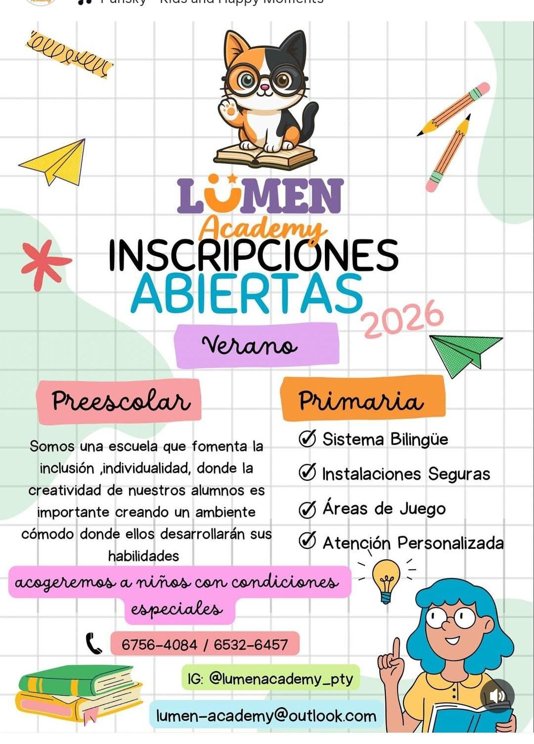 Lumen Academy es una escuela inclusiva ubicada en Arraiján, Panamá Oeste, comprometida con ofrecer una educación verdaderamente personalizada y adaptada a las características, capacidades y necesidades de cada estudiante.